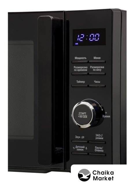 отдельностоящая, микроволны (соло), объем 20 л, выходная мощность микроволн 800 Вт, управление сенсорное, автоприготовление, авторазмораживание, цвет черный