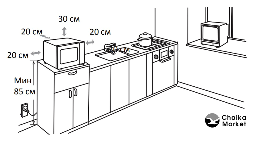 отдельностоящая, микроволны и гриль, объем 20 л, выходная мощность микроволн 800 Вт, управление механическое, цвет черный