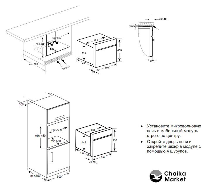 Размеры ниши для встраивания |