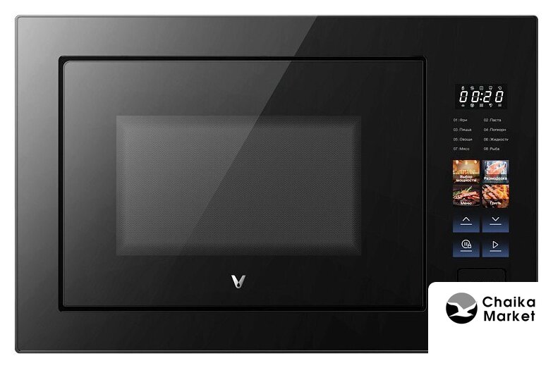 встраиваемая, микроволны (соло), объем 20 л, выходная мощность микроволн 850 Вт, управление электронное, автоприготовление, авторазмораживание, цвет черный