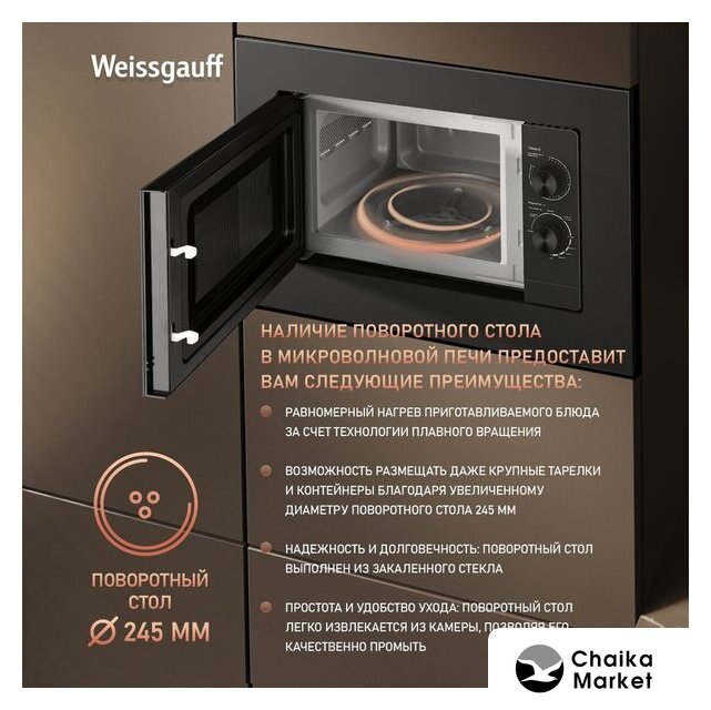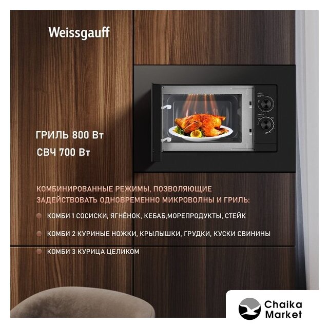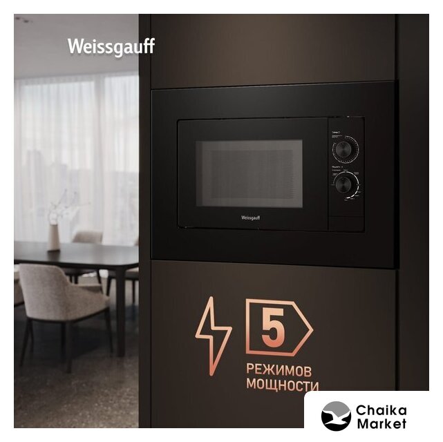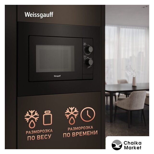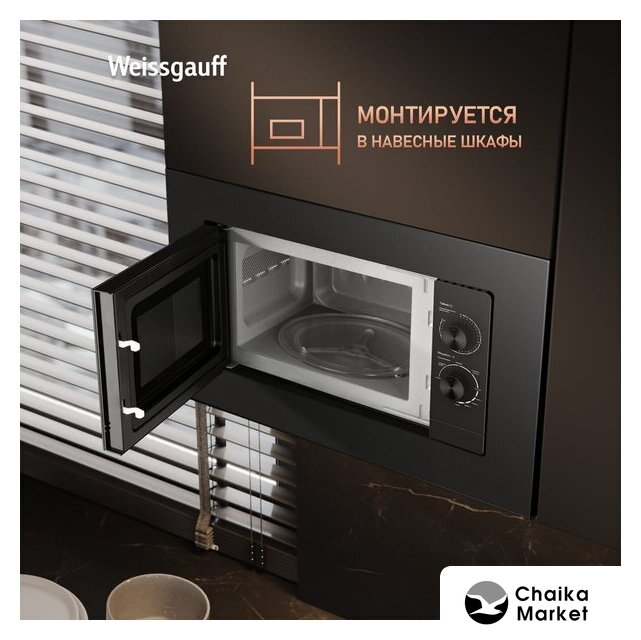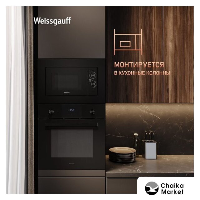 встраиваемая, микроволны (соло), объем 20 л, выходная мощность микроволн 700 Вт, управление электронное, автоприготовление, авторазмораживание, цвет черный