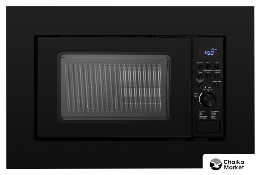 встраиваемая, микроволны и гриль, объем 20 л, выходная мощность микроволн 700 Вт, управление электронное, автоприготовление, авторазмораживание, цвет черный