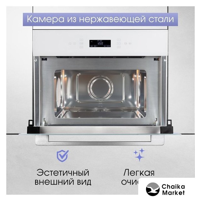 встраиваемая, микроволны (соло), объем 40 л, выходная мощность микроволн 1000 Вт, управление сенсорное, автоприготовление, авторазмораживание, цвет серебристый