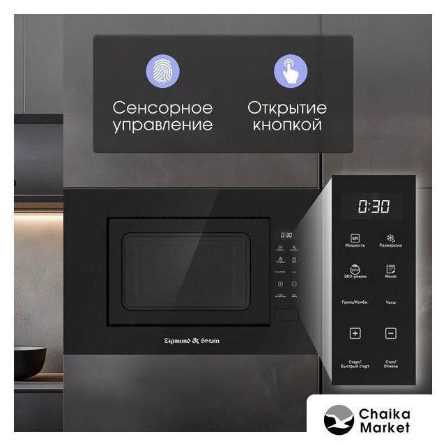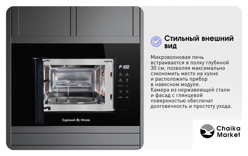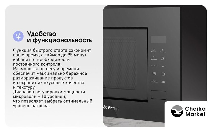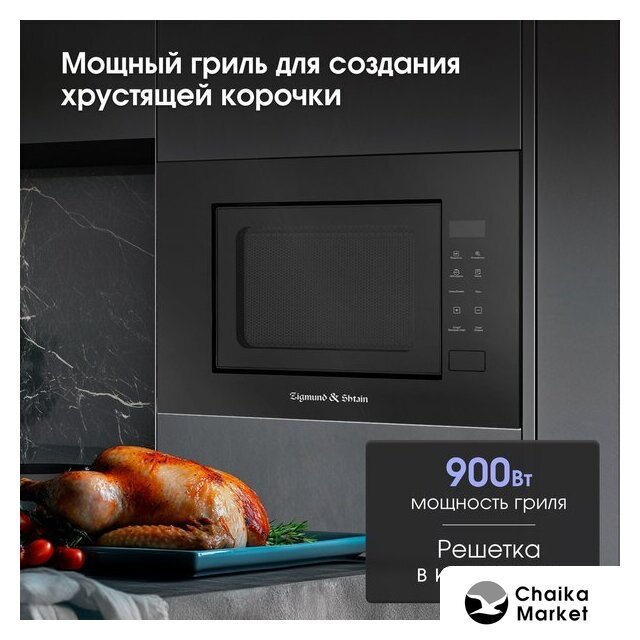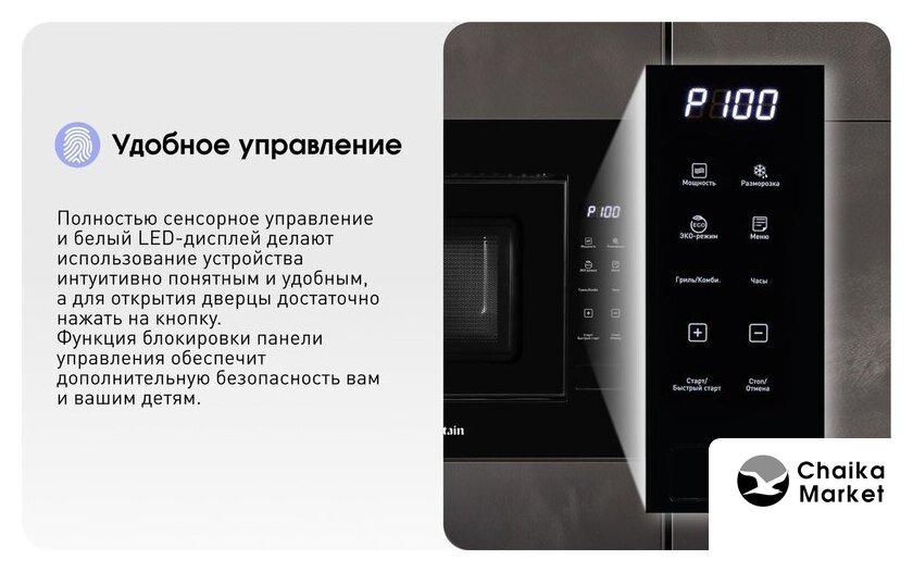 встраиваемая, микроволны и гриль, объем 25 л, выходная мощность микроволн 900 Вт, управление сенсорное, автоприготовление, цвет черный