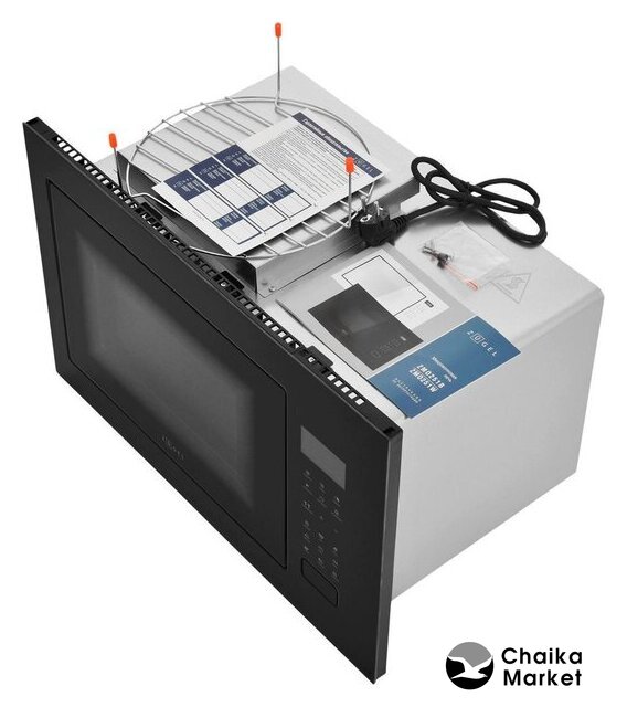 встраиваемая, микроволны и гриль, объем 25 л, выходная мощность микроволн 900 Вт, управление сенсорное, автоприготовление, авторазмораживание, цвет черный