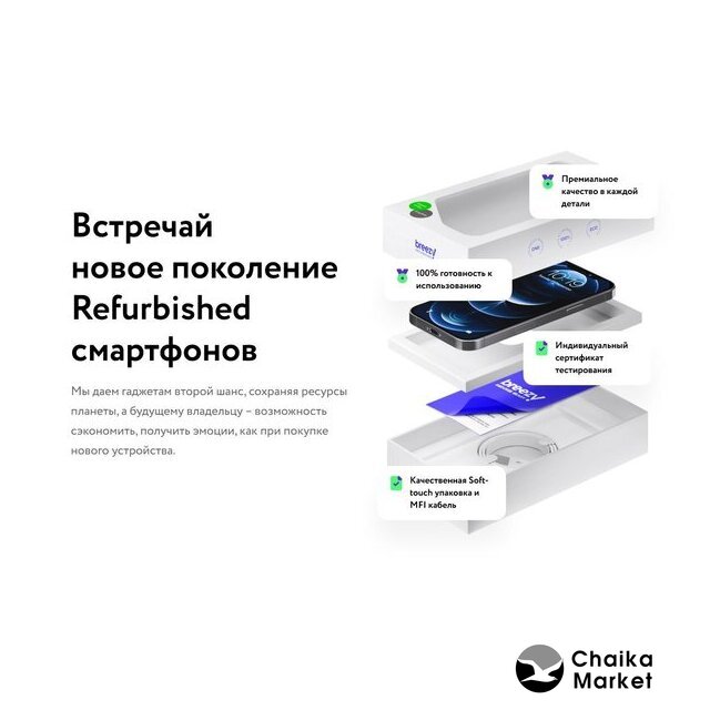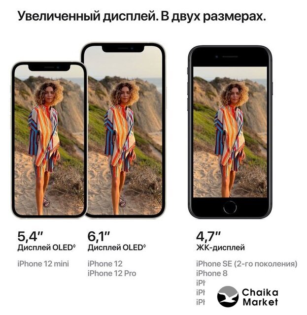 смартфон, Apple iOS, экран 5.4" OLED (1080x2340) 60 Гц, Apple A14 Bionic, ОЗУ 4 ГБ, память 64 ГБ, камера 12 Мп, моноблок, влагозащита IP68