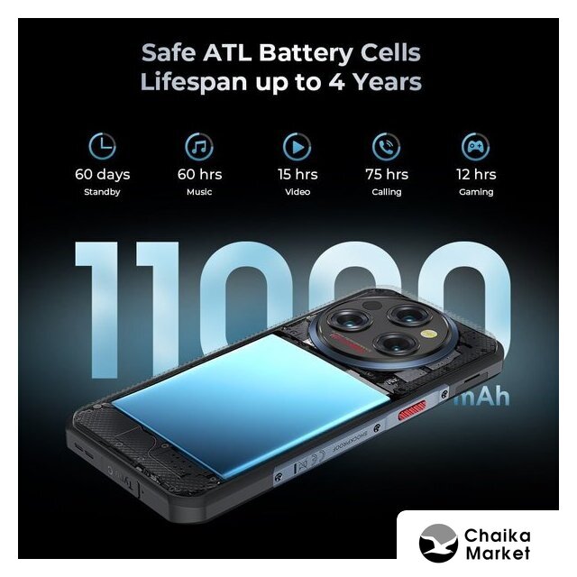 смартфон, Android, экран 6.58" IPS (1080x2408) 120 Гц, Mediatek Dimensity 7025, ОЗУ 12 ГБ, память 256 ГБ, поддержка карт памяти, камера 108 Мп, аккумулятор 11000 мАч, 2 SIM (nano-SIM), моноблок, влагозащита IP68/IP69