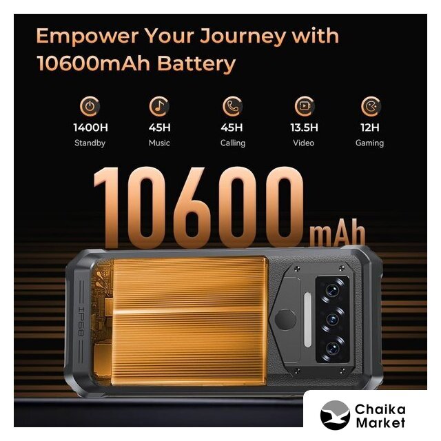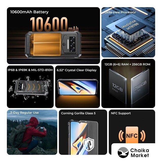 смартфон, Android, экран 6.58" IPS (1080x2408) 120 Гц, Mediatek Helio G99, ОЗУ 12 ГБ, память 256 ГБ, поддержка карт памяти, камера 100 Мп, аккумулятор 10600 мАч, моноблок, влагозащита IP68