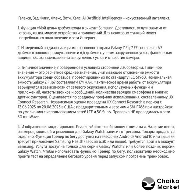 | Отличия от предыдущего поколения | ✅ Galaxy Z Flip7 получил увеличенный внешний экран FlexWindow размером 4,1 дюйма с частотой обновления 120 Гц и яркостью до 2600 нит, что позволяет использовать множество функций без необходимости раскрывать устройство. Основной внутренний дисплей также увеличился до 6,9 дюйма, обеспечивая более комфортное взаимодействие с контентом. Кроме того, устройство стало тоньше и легче, что улучшает его портативность и удобство использования.✅ В отличие от Z Flip6, который оснащался процессором Snapdragon 8 Gen 3, новый Z Flip7 работает на базе 10-ядерного чипсета Exynos 2500, выполненного по 3-нм техпроцессу, что обеспечивает улучшенную производительность и энергоэффективность.✅ Внешний экран Galaxy Z Flip7 имеет более тонкие рамки, самые тонким в серии Galaxy Z Flip. Такая конструкция от края до края создает ощущение безграничного экрана, что делает его еще более удобным для использования в сложенном состоянии. В раскрытом виде это наш самый тонкий Flip, что ставит его в один ряд с любым другим смартфоном. Размер основного экрана увеличился до 6,9 дюйма, а соотношение сторон составляет 21:9, что обеспечивает более разнообразное использование. |
