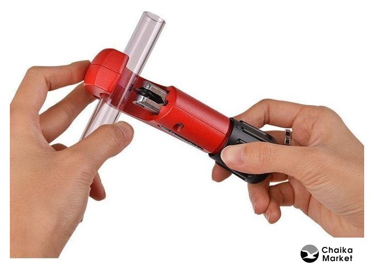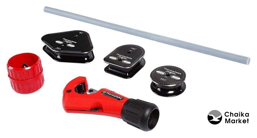 | Комплектация | Три алюминиевых гибочных формы (135°, 90°, 180° и 360°), резак для трубок, фаскосниматель с тремя лезвиями. |