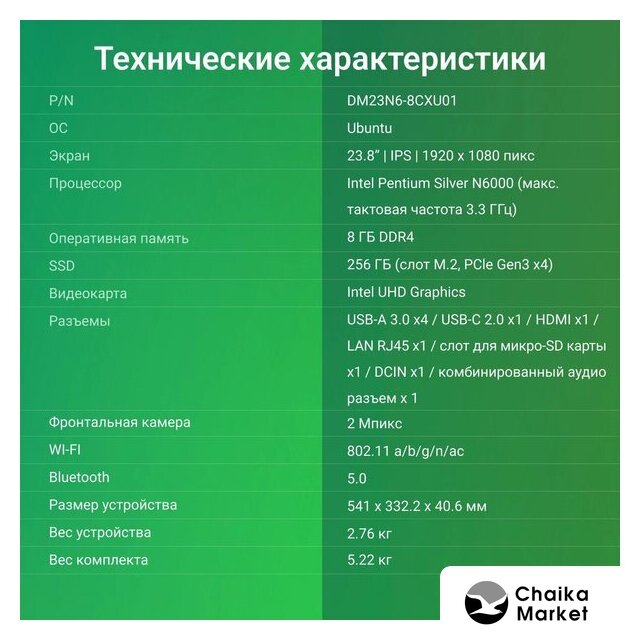 23.8" 1920 x 1080 IPS, матовый, несенсорный, Intel Celeron G5905 3500 МГц, 8 ГБ, SSD 120 ГБ, граф. адаптер: встроенный, без ОС, цвет черный