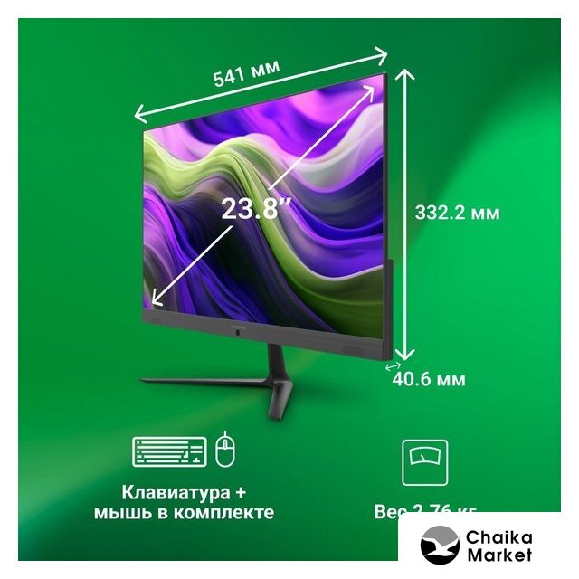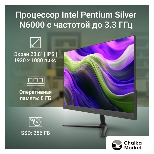 23.8" 1920 x 1080 IPS, матовый, несенсорный, Intel Pentium Gold G7400, 8 ГБ, SSD 480 ГБ, видеокарта встроенная, без ОС, цвет черный
