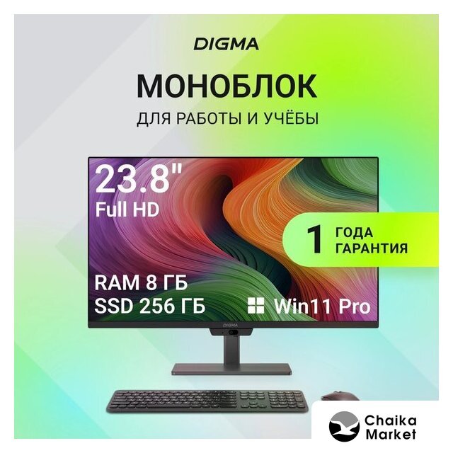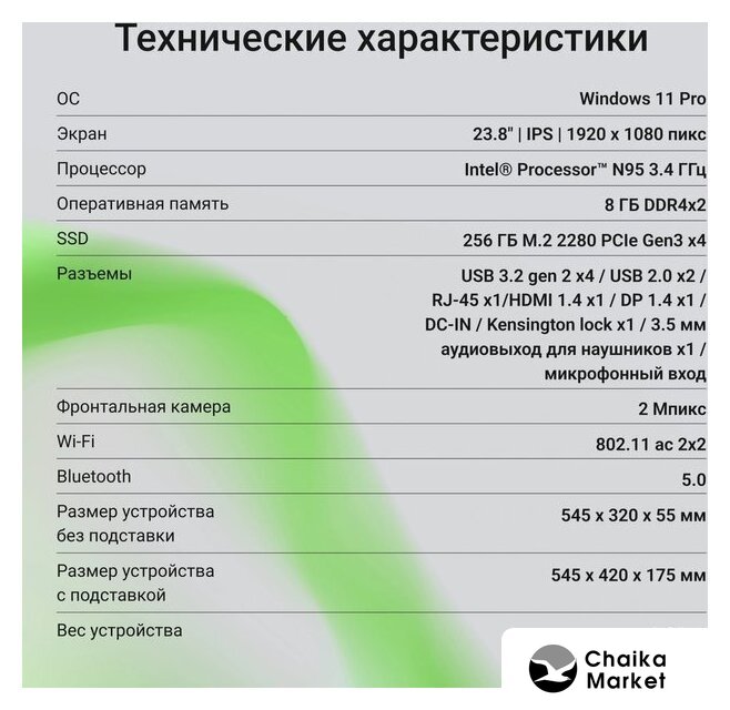23.8" 1920 x 1080 IPS, матовый, несенсорный, Intel Celeron G5905 3500 МГц, 8 ГБ, SSD 256 ГБ, граф. адаптер: встроенный, без ОС, цвет черный