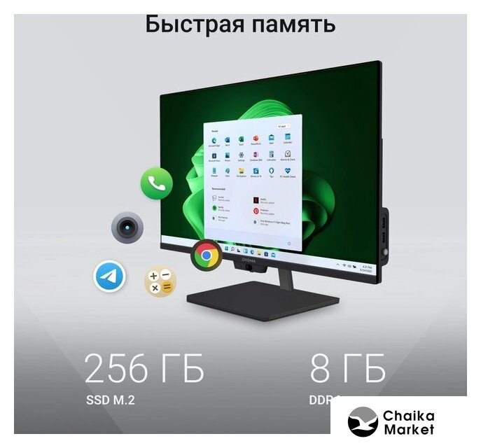 23.8" 1920 x 1080 IPS, матовый, несенсорный, Intel Core i3 12100 4400 МГц, 8 ГБ, SSD 500 ГБ, видеокарта встроенная, без ОС, цвет черный