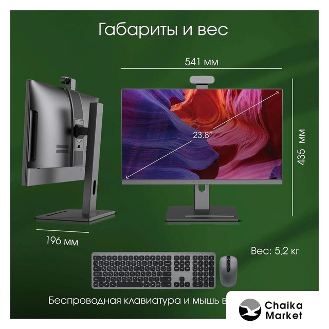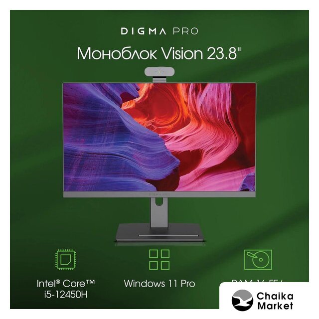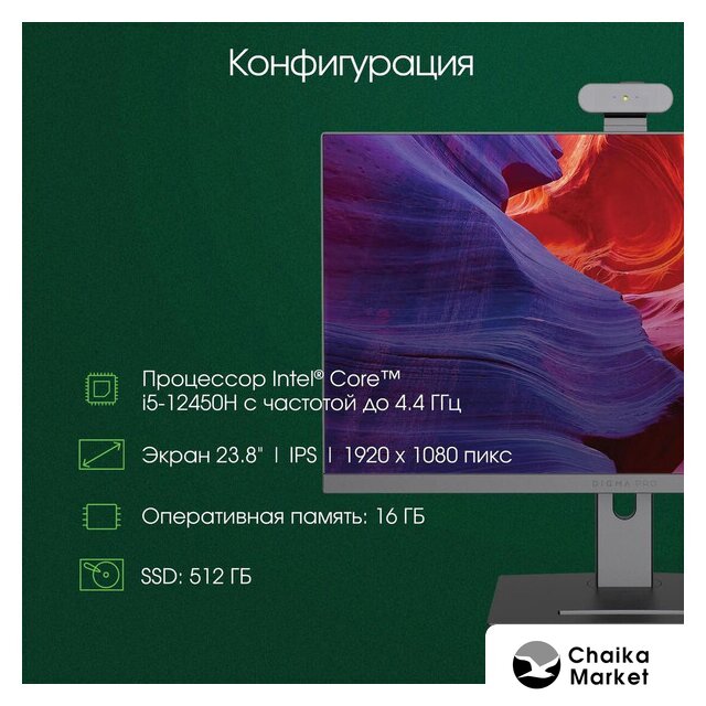 23.8" 1920 x 1080 IPS, матовый, несенсорный, Intel Core i5 12400 4400 МГц, 8 ГБ, SSD 480 ГБ, видеокарта встроенная, Windows 10 Pro, цвет черный