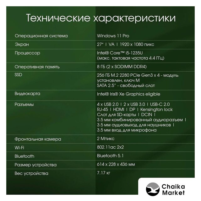 23.8" 1920 x 1080 IPS, матовый, несенсорный, Intel Core i5 12400 4400 МГц, 8 ГБ, SSD 480 ГБ, видеокарта встроенная, Windows 10 Pro, цвет белый
