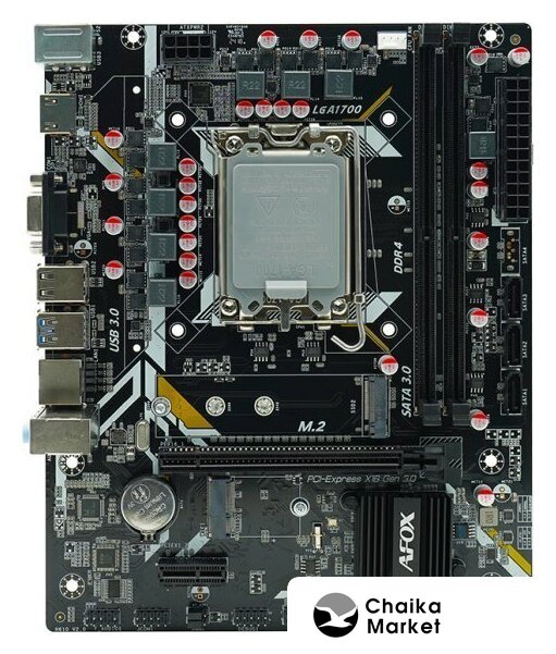 mATX, сокет Intel LGA1700, чипсет Intel H610, память 2xDDR4 до 3200 МГц, слоты: 1xPCIe x16 4.0, 1xPCIe x1