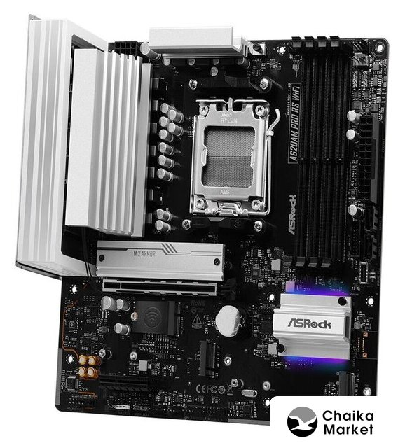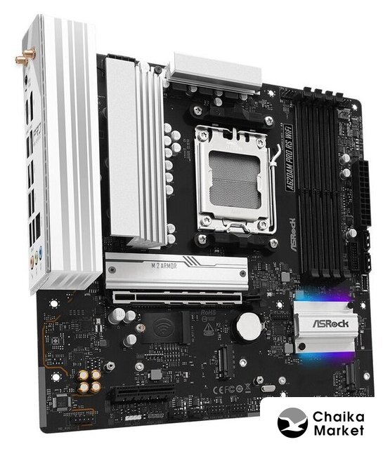 mATX, сокет AMD AM5, чипсет AMD B650, память 4xDDR5 до 7600 МГц, слоты: 2xPCIe x16 4.0, 1xPCIe x1, 2xM.2, 802.11ax (Wi-Fi 6E)+Bluetooth 5.3, 12+2+1 фаз питания