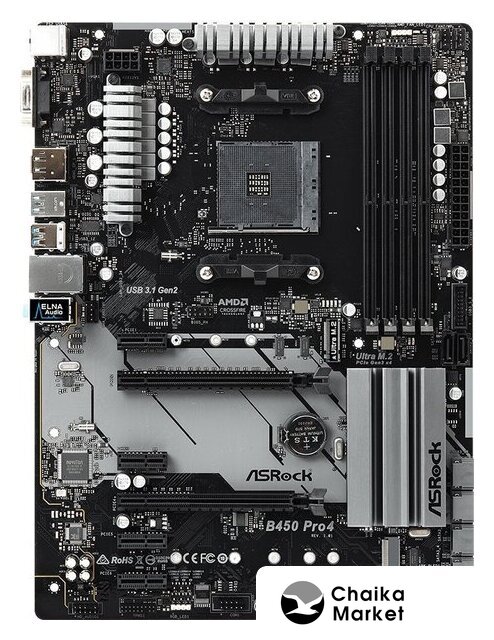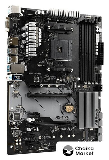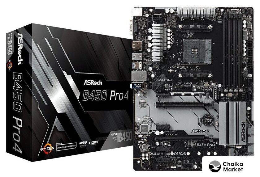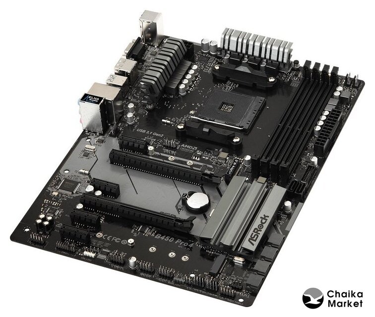 mATX, сокет AMD AM4, чипсет AMD B550, память 4xDDR4 до 4733 МГц, слоты: 1xPCIe x16 4.0, 1xPCIe x1, 2xM.2