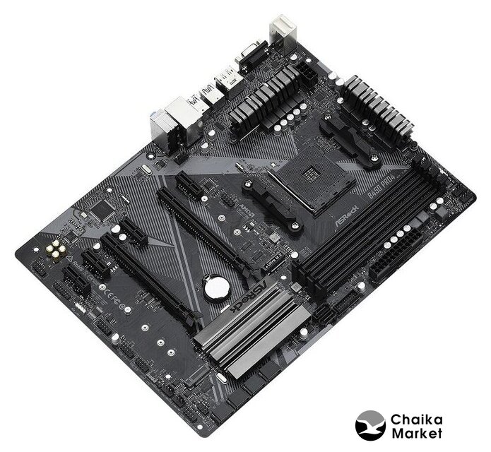 mATX, сокет AMD AM4, чипсет AMD B550, память 4xDDR4 до 4733 МГц, слоты: 1xPCIe x16 4.0, 1xPCIe x1, 2xM.2