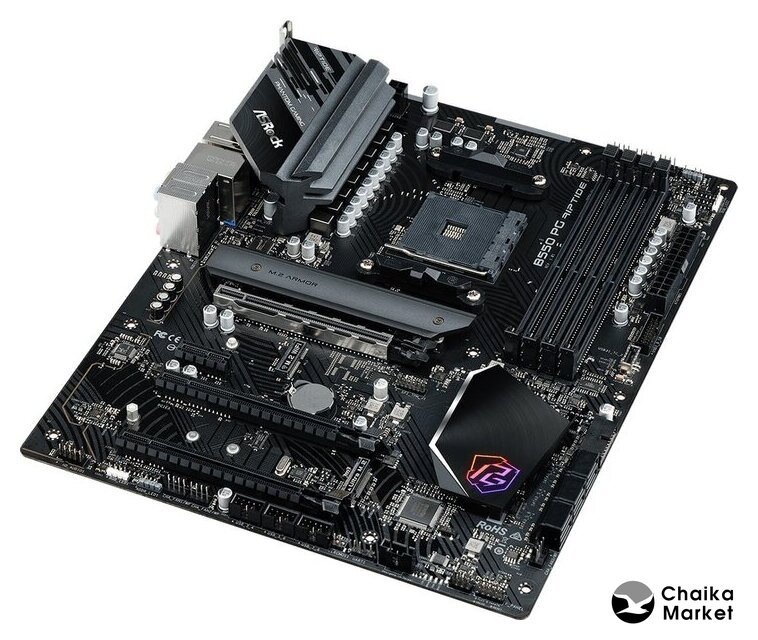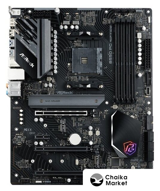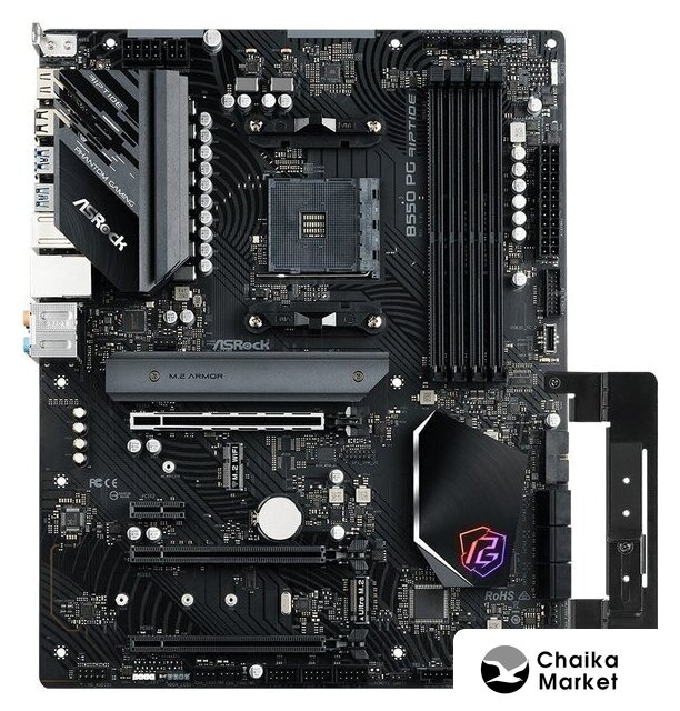 ATX, сокет AMD AM4, чипсет AMD B550, память 4xDDR4 до 5100 МГц, слоты: 2xPCIe x16 4.0, 3xPCIe x1, 2xM.2, 12+2 фаз питания