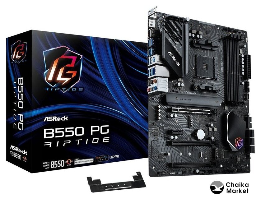ATX, сокет AMD AM4, чипсет AMD B550, память 4xDDR4 до 4733 МГц, слоты: 2xPCIe x16 4.0 и 3.0, 3xPCIe x1, 2xM.2