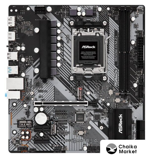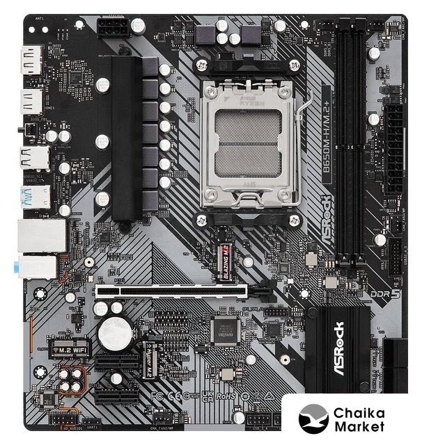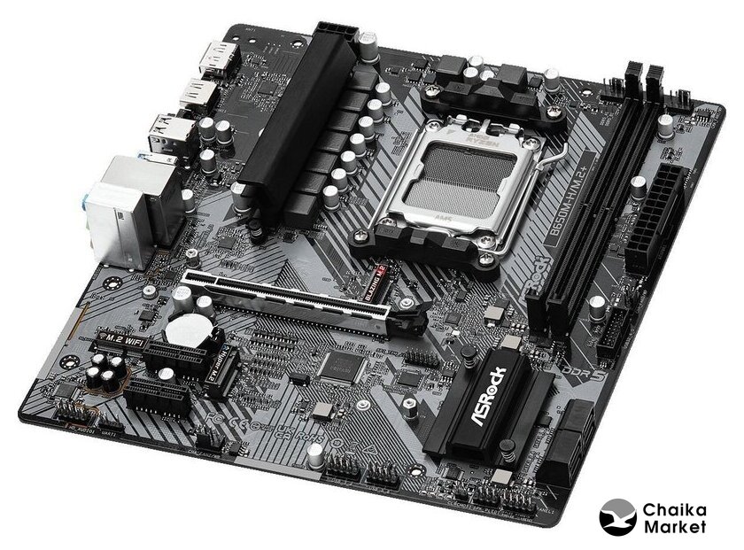 mATX, сокет AMD AM5, чипсет AMD B650, память 4xDDR5 до 6000 МГц, слоты: 1xPCIe x16 4.0, 3xPCIe x1, 2xM.2