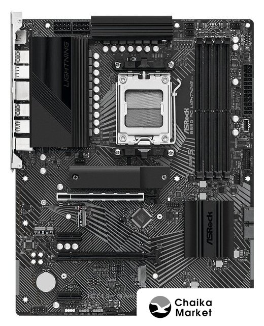 mATX, сокет AMD AM5, чипсет AMD B650, память 4xDDR5 до 7600 МГц, слоты: 3xPCIe x16 4.0, 2xM.2