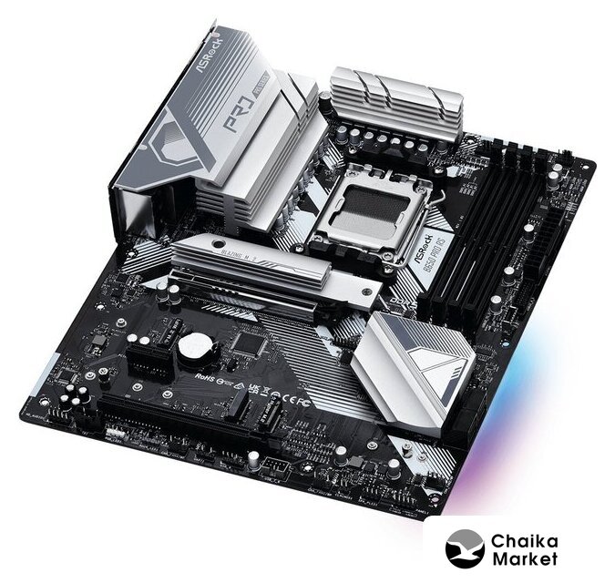mATX, чипсет AMD B850, память 4xDDR5/DDR5 CUDIMM до 8200 МГц, слоты: 1xPCIe x16 5.0, 2xPCIe x1, 2xM.2, 802.11ax (Wi-Fi 6E)+Bluetooth 5.3, 10+2+1 фаз питания