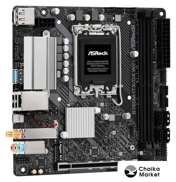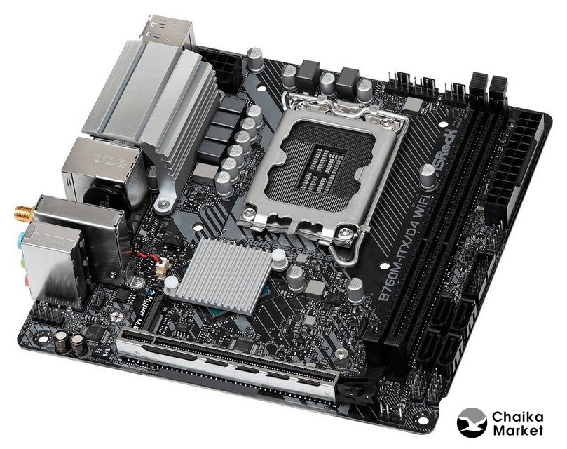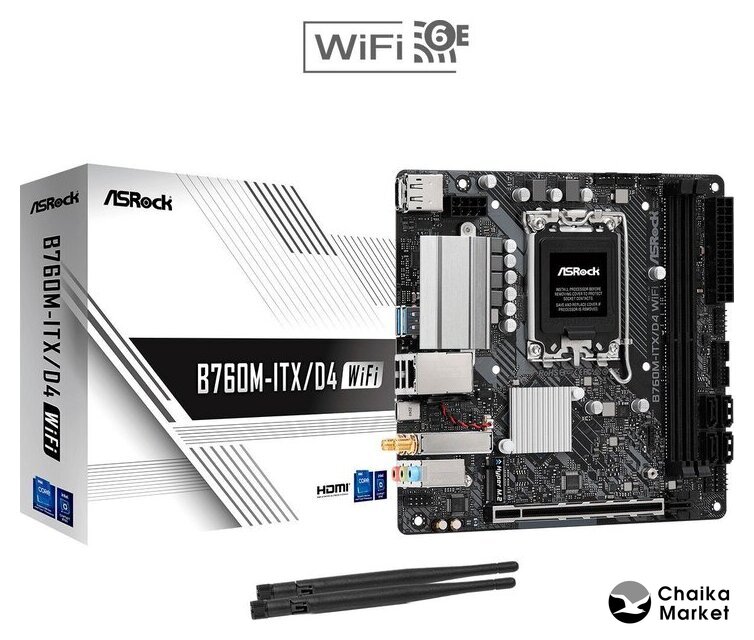 mATX, сокет Intel LGA1700, чипсет Intel B760, память 4xDDR5 до 7200 МГц, слоты: 1xPCIe x16 5.0, 1xPCIe x1, 3xM.2, 802.11ax (Wi-Fi 6E)+Bluetooth 5.3, 12+1+1 фаз питания