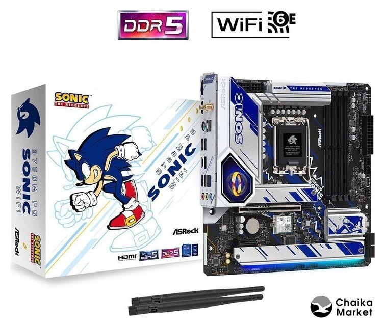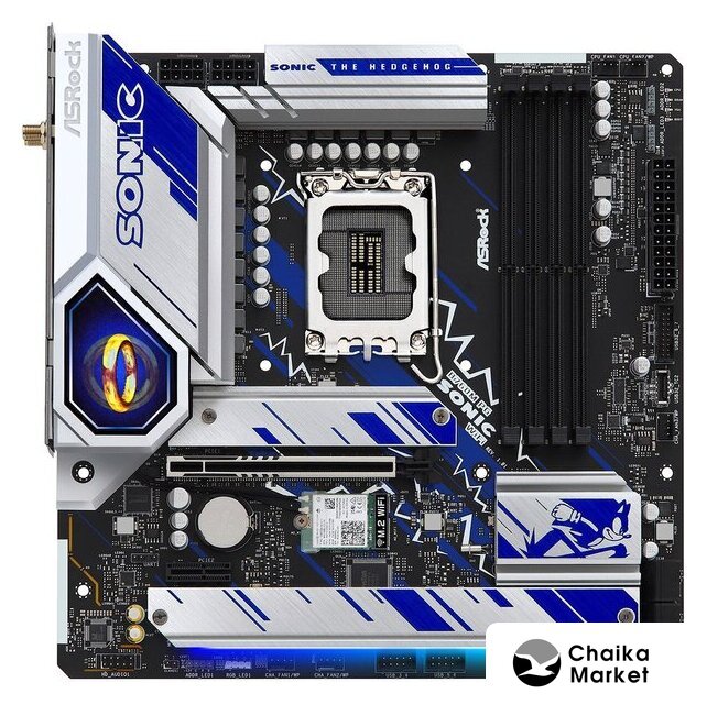 mATX, сокет Intel LGA1700, чипсет Intel B760, память 4xDDR5 до 6800 МГц, слоты: 2xPCIe x16 4.0, 1xPCIe x1, 2xM.2, 802.11ax (Wi-Fi 6E)+Bluetooth 5.3, 12+1+1 фаз питания