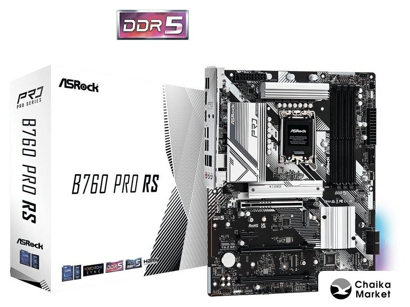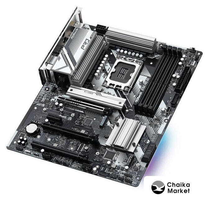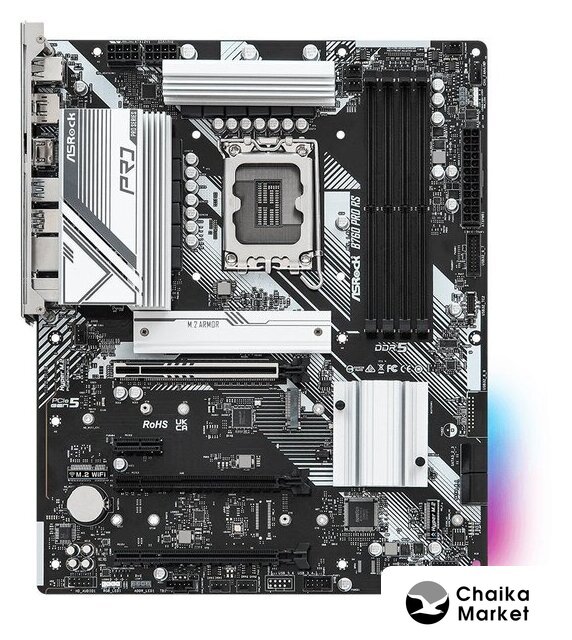 mATX, сокет Intel LGA1700, чипсет Intel B760, память 2xDDR4 до 5333 МГц, слоты: 1xPCIe x16 4.0, 1xPCIe x1, 2xM.2, 802.11ac (Wi-Fi 5)+Bluetooth 5.1, 6+2+1 фаз питания