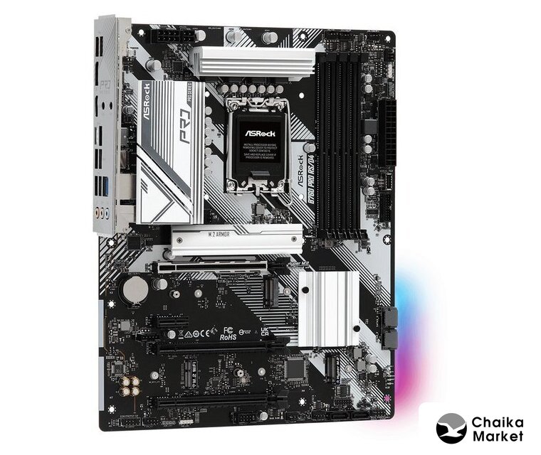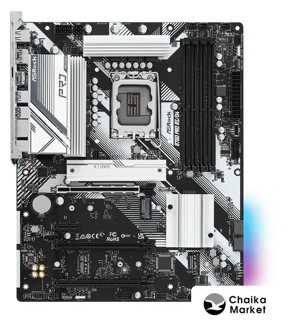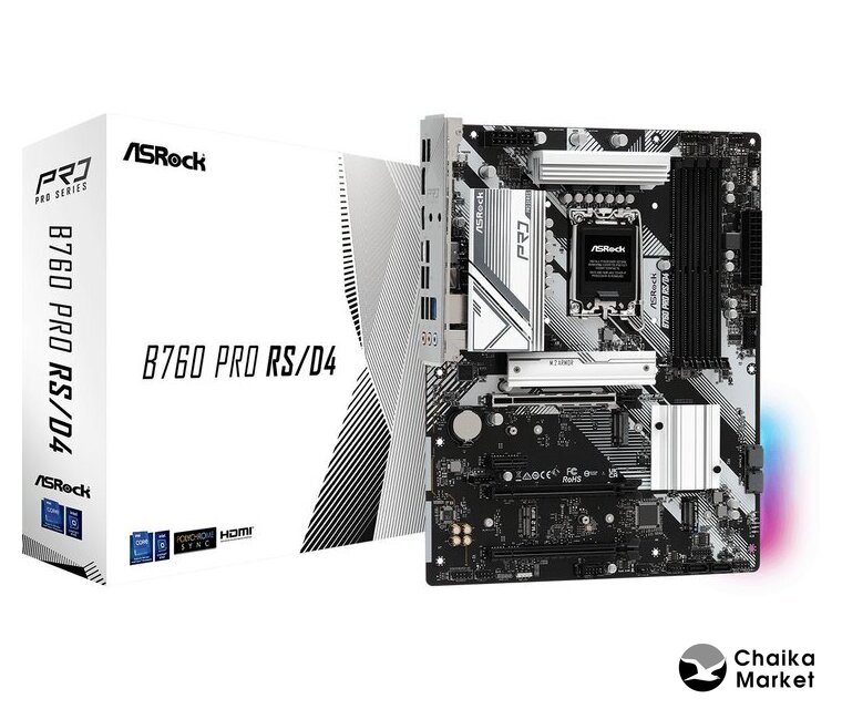 mATX, сокет Intel LGA1700, чипсет Intel B760, память 4xDDR4 до 5333 МГц, слоты: 3xPCIe x16 4.0, 2xM.2