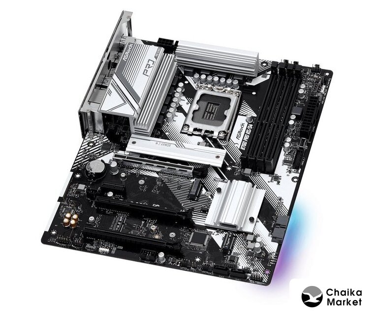 mATX, сокет Intel LGA1700, чипсет Intel H670, память 4xDDR4 до 5333 МГц, слоты: 2xPCIe x16 4.0, 1xPCIe x1, 2xM.2