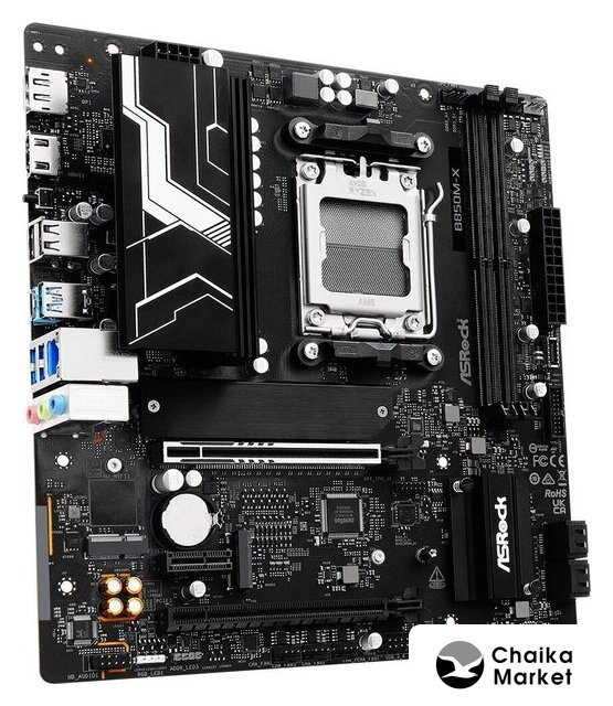 mATX, сокет AMD AM5, чипсет AMD B650, память 2xDDR5 до 7200 МГц, слоты: 2xPCIe x16 4.0, 1xPCIe x1, 2xM.2, 8+2+1 фаз питания