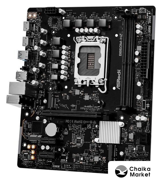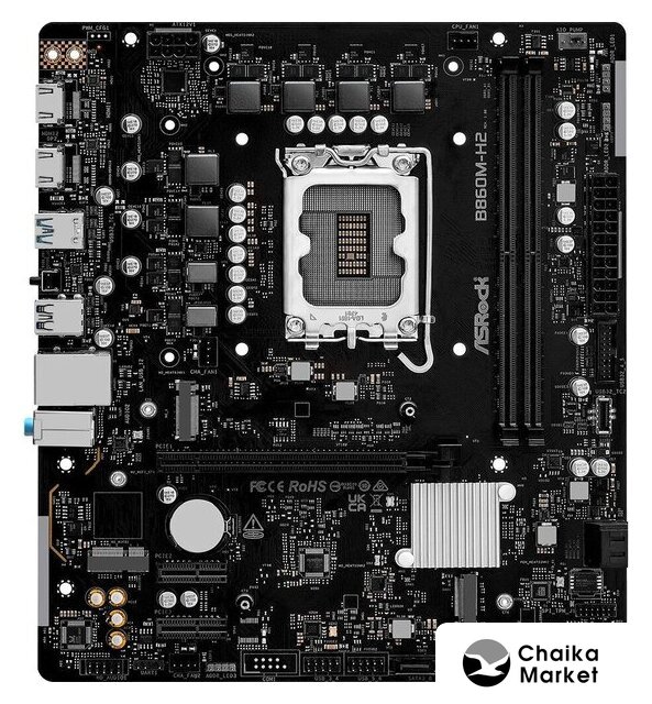 mATX, чипсет Intel B860, память 2xDDR5 до 9066 МГц, слоты: 2xPCIe x16 5.0, 2xM.2, 6+1+2 фаз питания