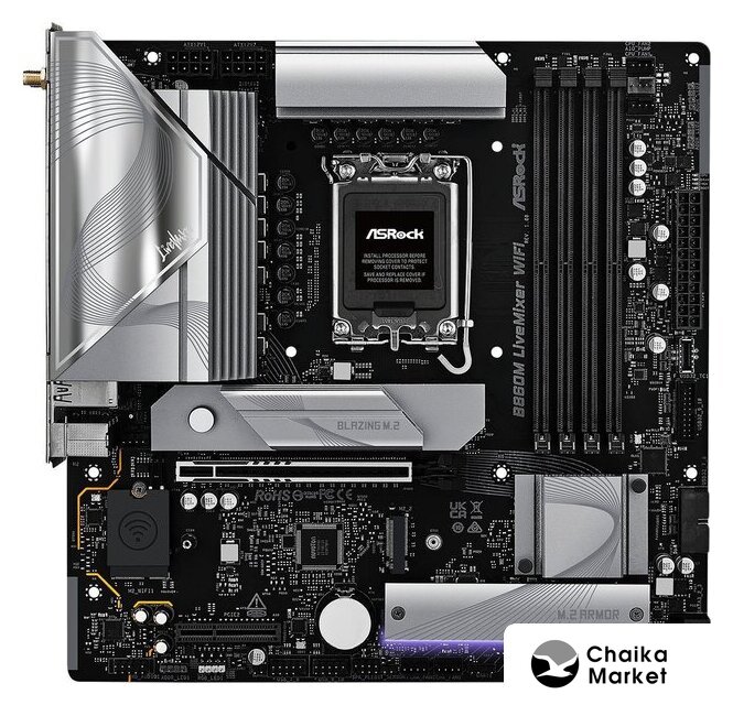 mATX, чипсет Intel B860, память 4xDDR5/DDR5 CUDIMM до 8666 МГц, слоты: 1xPCIe x16 5.0, 1xPCIe x4, 3xM.2, 802.11ax (Wi-Fi 6E)+Bluetooth 5.3, 10+1+1+1+1 фаз питания