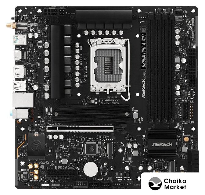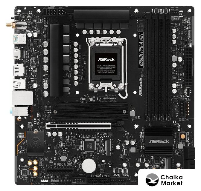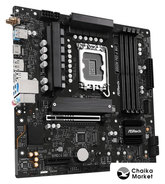 mATX, чипсет Intel B860, память 4xDDR5/DDR5 CUDIMM до 8666 МГц, слоты: 1xPCIe x16 5.0, 1xPCIe x4, 3xM.2, 802.11ax (Wi-Fi 6E)+Bluetooth 5.3, 10+1+1+1+1 фаз питания