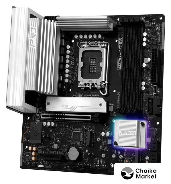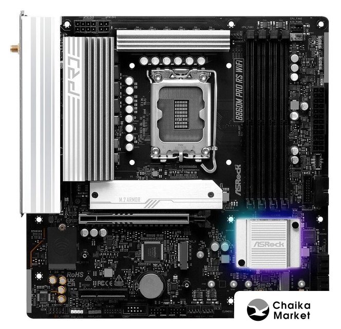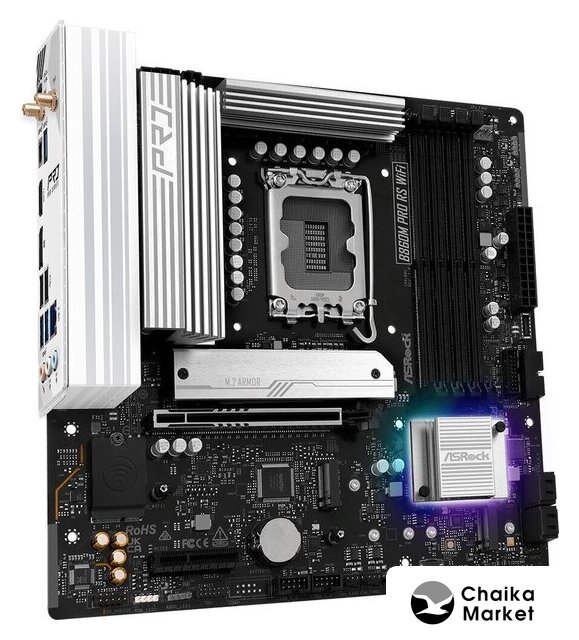 mATX, чипсет Intel B860, память 4xDDR5/DDR5 CUDIMM до 8666 МГц, слоты: 1xPCIe x16 5.0, 1xPCIe x4, 3xM.2, 802.11ax (Wi-Fi 6E)+Bluetooth 5.3, 10+1+1+1+1 фаз питания