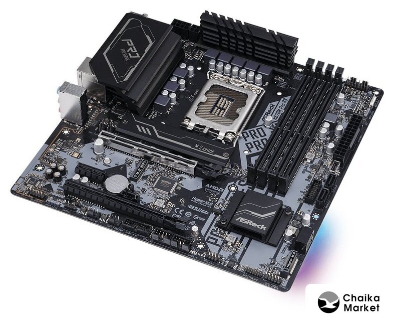 mATX, сокет Intel LGA1700, чипсет Intel B760, память 4xDDR5 до 6800 МГц, слоты: 1xPCIe x16 4.0, 2xPCIe x1, 2xM.2