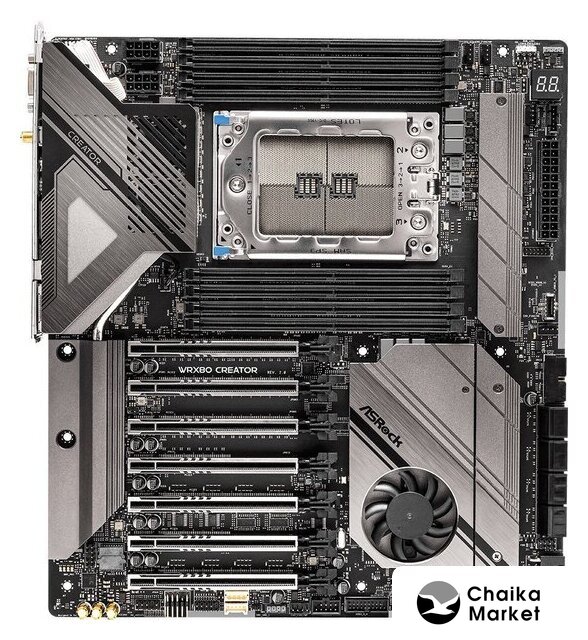 eATX, сокет AMD TR5, чипсет AMD TRX50, память 4xDDR5 до 7800 МГц, слоты: 3xPCIe x16 5.0, 4xM.2, 802.11be (Wi-Fi 7)+Bluetooth 5.3