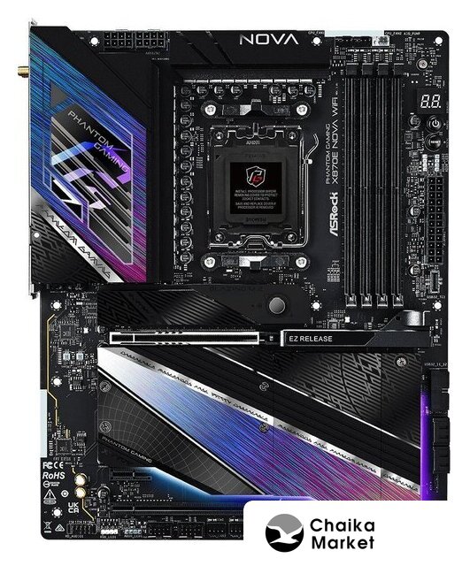 ATX, сокет AMD AM5, чипсет AMD X870, память 4xDDR5 до 8400 МГц, слоты: 3xPCIe x16 5.0, 4xM.2, 802.11be (Wi-Fi 7)+Bluetooth 5.4, 14+2+1 фаз питания