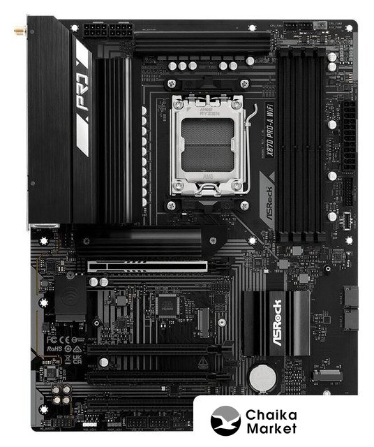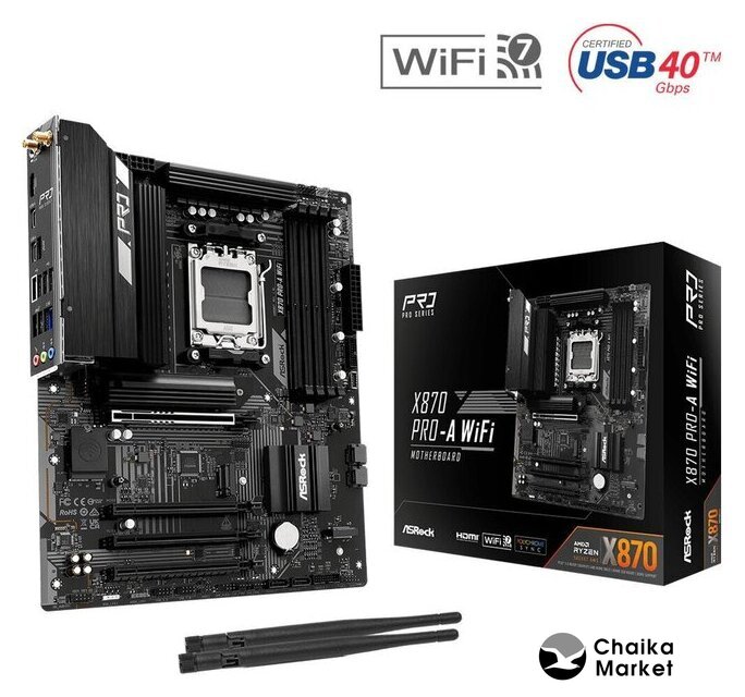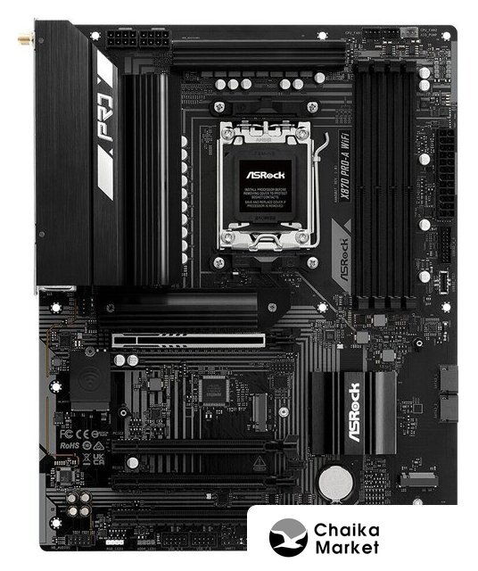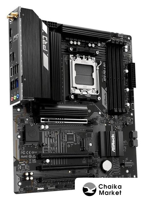ATX, сокет AMD AM5, чипсет AMD X870, память 4xDDR5 до 8000 МГц, слоты: 4xPCIe x16 5.0, 4xM.2, 802.11be (Wi-Fi 7)+Bluetooth 5.4, 14+2+1 фаз питания