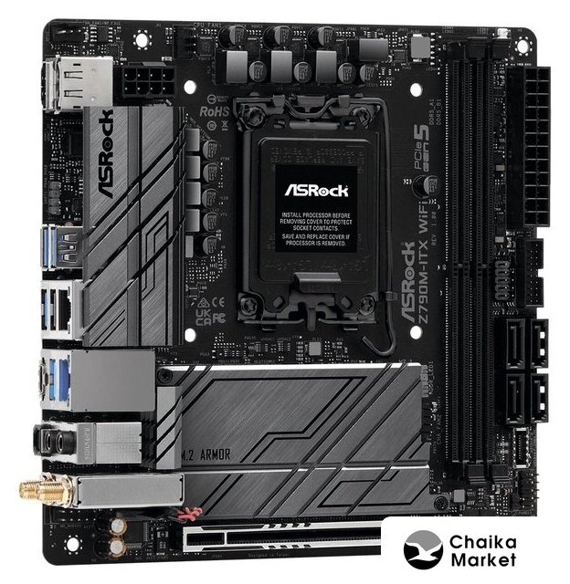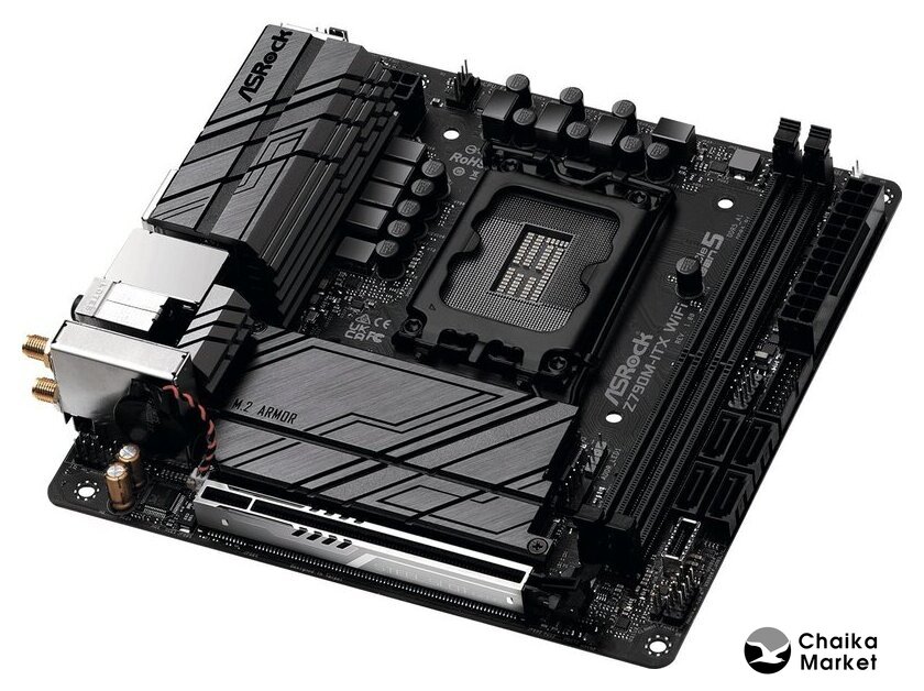 mATX, сокет Intel LGA1700, чипсет Intel B760, память 4xDDR4 до 5333 МГц, слоты: 2xPCIe x16 5.0, 1xPCIe x1, 3xM.2, 802.11ax (Wi-Fi 6)+Bluetooth 5.2, 12+1 фаз питания