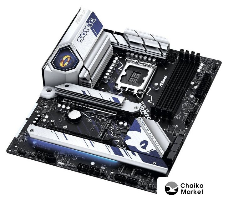 mATX, сокет Intel LGA1700, чипсет Intel B760, память 4xDDR5 до 7800 МГц, слоты: 2xPCIe x16 5.0, 2xPCIe x1, 2xM.2, 802.11ax (Wi-Fi 6E)+Bluetooth 5.3, 12+1+1 фаз питания