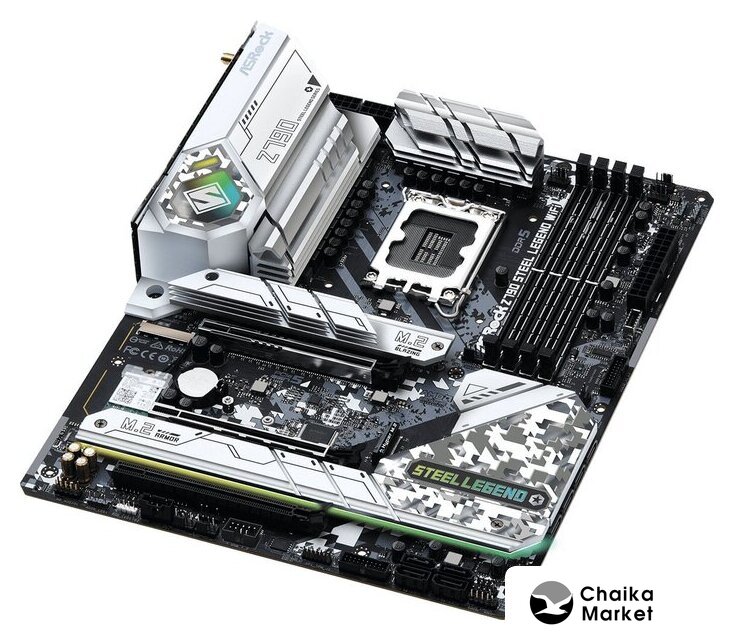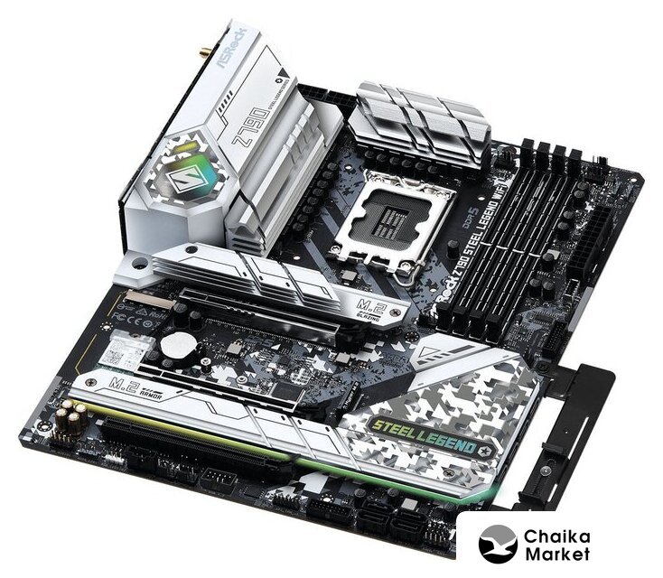 mATX, сокет Intel LGA1700, чипсет Intel B760, память 4xDDR5 до 7800 МГц, слоты: 2xPCIe x16 5.0, 2xPCIe x1, 2xM.2, 802.11ax (Wi-Fi 6E)+Bluetooth 5.3, 12+1+1 фаз питания