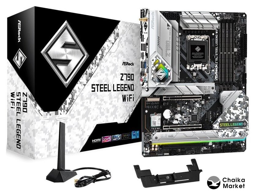 Комплектация | - 1 x Инструкция для пользователя- 2 x кабелей SATA- 1 x ASRock WiFi 2.4/5/6 ГГц Антенны- 4 x Винты для разъемов M.2- 1 x Держатель видеокарты |