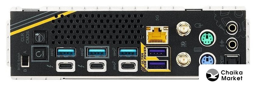 Описание внутренних разъемов | 2 x разъемы USB 2.0 (поддержка 3 портов USB 2.0)2 x разъемы USB 3.2 Gen1 (поддержка 4 портов USB 3.2 Gen1)1 x разъем USB 3.2 Gen2x2 Type-C для передней панели (20 Гбит/с)1 x разъем для нагревателя1 x разъем ElmorLabs OCP1 x Dr. Debug с LED1 x кнопка питания с LED1 x кнопка сброса с LED1 x кнопка повторной попытки включения1 x кнопка безопасной загрузкиV-Probe:11 точек измерения напряжения на платеRapid OC Buttons:кнопки +/- для настройки частоты OC6 x OC переключатели1 x переключатель медленного режима1 x переключатель LN2 режима3 кнопки профилей NickShih с LED4 x адресных разъема LED 5 В1 x разъем динамика и светодиода питания2 x термодатчика1 x разъем RGB подсветки 12 В |