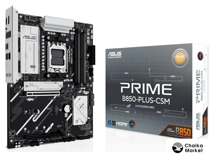 mATX, сокет AMD AM5, чипсет AMD B850, память 4xDDR5 до 8200 МГц, слоты: 2xPCIe x16 5.0, 2xM.2, 802.11ax (Wi-Fi 6E)+Bluetooth 5.3, 12+2+2 фаз питания