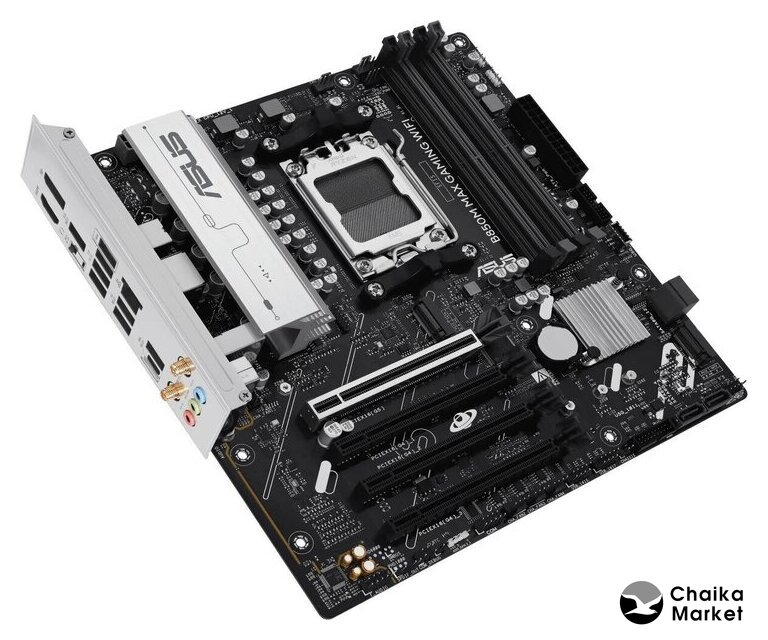 mATX, сокет AMD AM5, чипсет AMD B650, память 4xDDR5 до 6000 МГц, слоты: 1xPCIe x16 4.0, 3xPCIe x1, 2xM.2